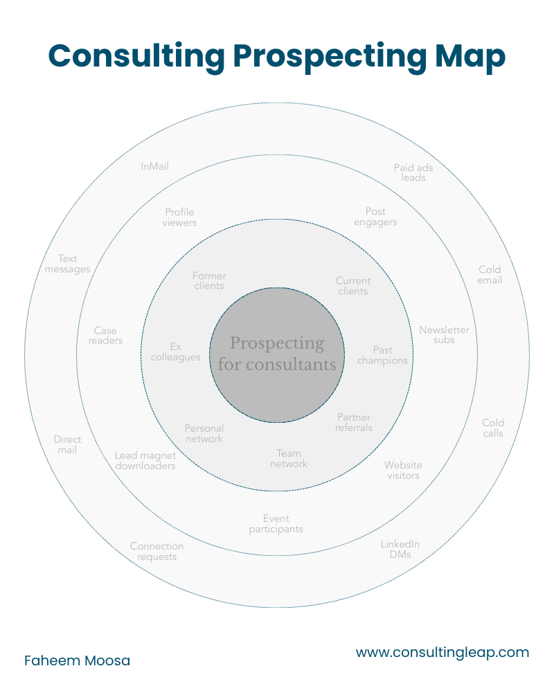 In my experience, consulting pipelines are built on trust first. And trust already exists somewhere in your orbit. You just have to work it deliberately.